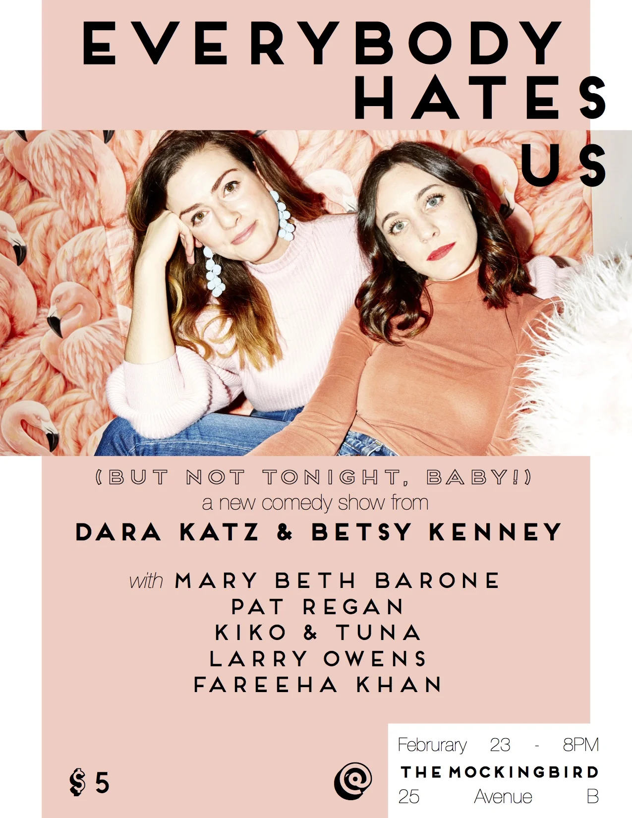 Every month, hosts Betsy Kenney and Dara Katz round up some of their favorite performers for a night of comedy born out of one question: what would you do on this stage if you stopped caring about how other people felt about you?